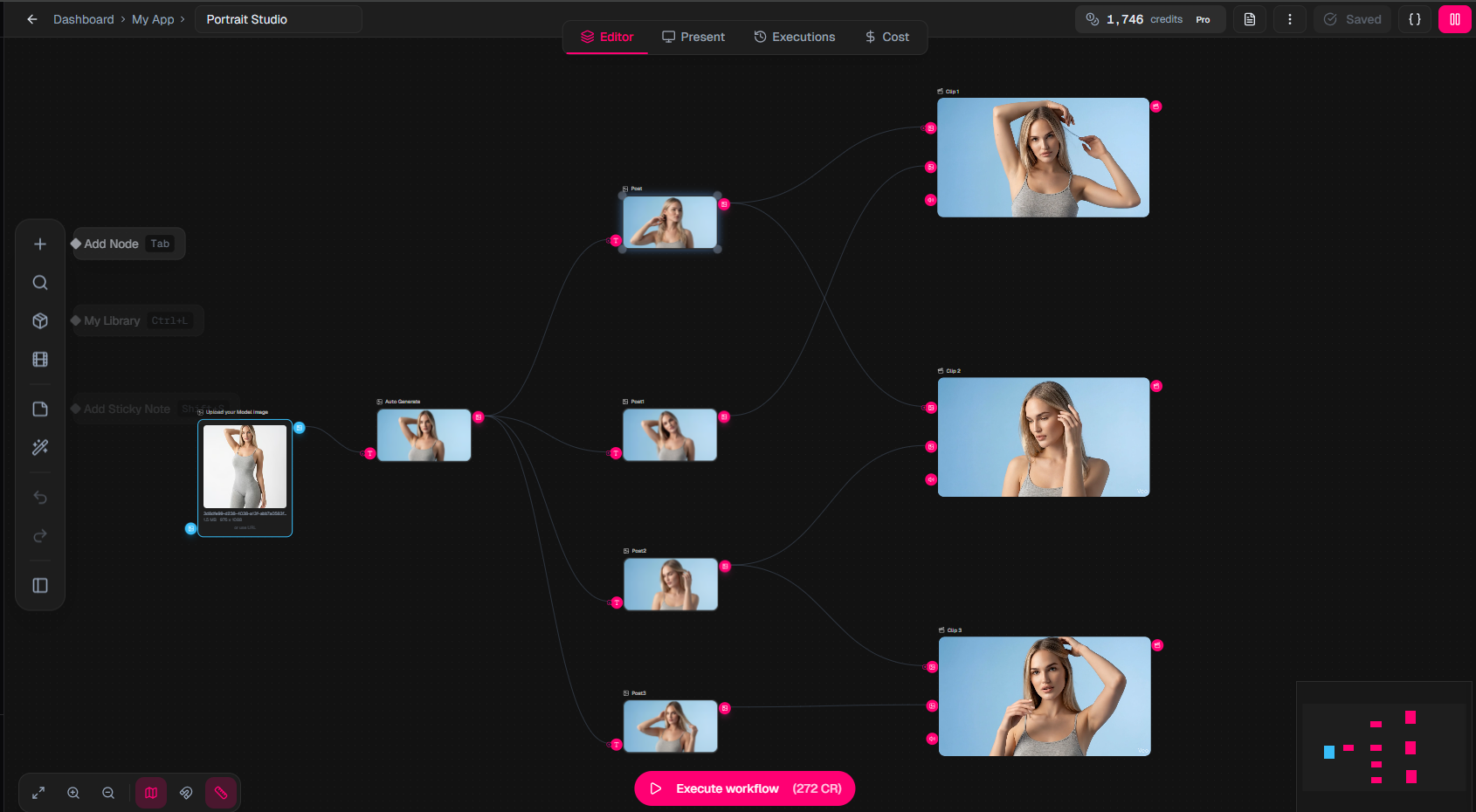 Workflow: Multiple steps generating visuals, motion, and audio